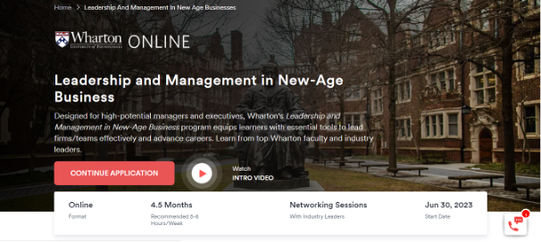 Conçu pour les managers et les cadres à haut potentiel, le programme Leadership and Management in New-Age Business de Wharton dote les apprenants d’outils essentiels pour diriger efficacement des entreprises/équipes et faire progresser leur carrière. Apprenez auprès des meilleurs professeurs de Wharton et des leaders de l’industrie.