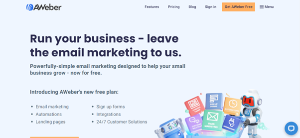 AWeber simplifie l’e-mail marketing pour les petites entreprises avec un éditeur intuitif, des modèles personnalisables, une automatisation avancée, des analyses détaillées, un créateur de pages de destination et des notifications push pour booster votre croissance en ligne.